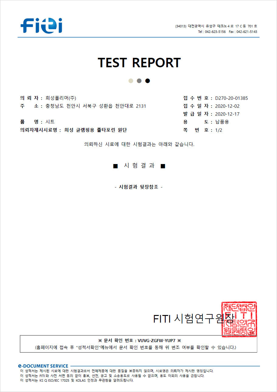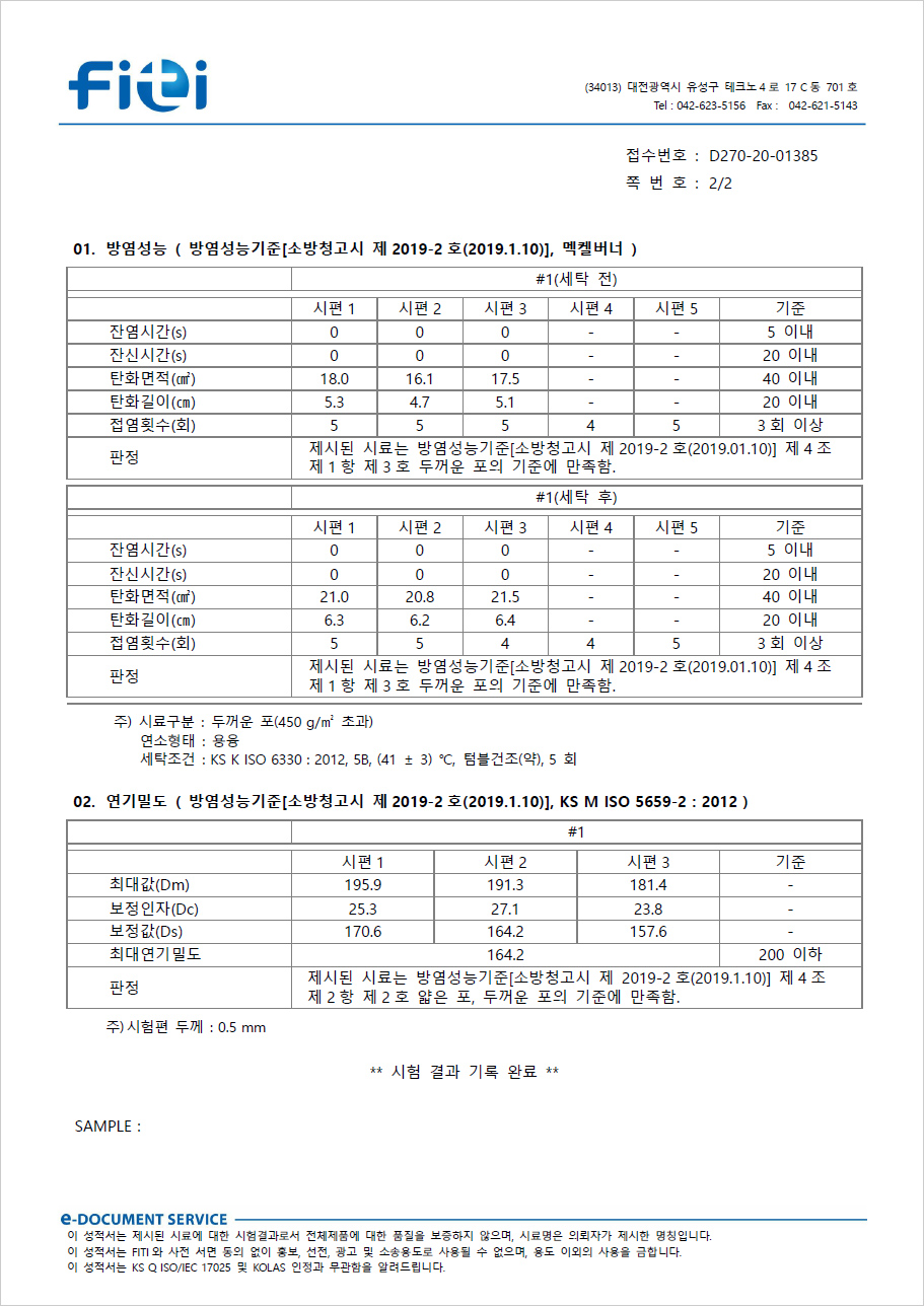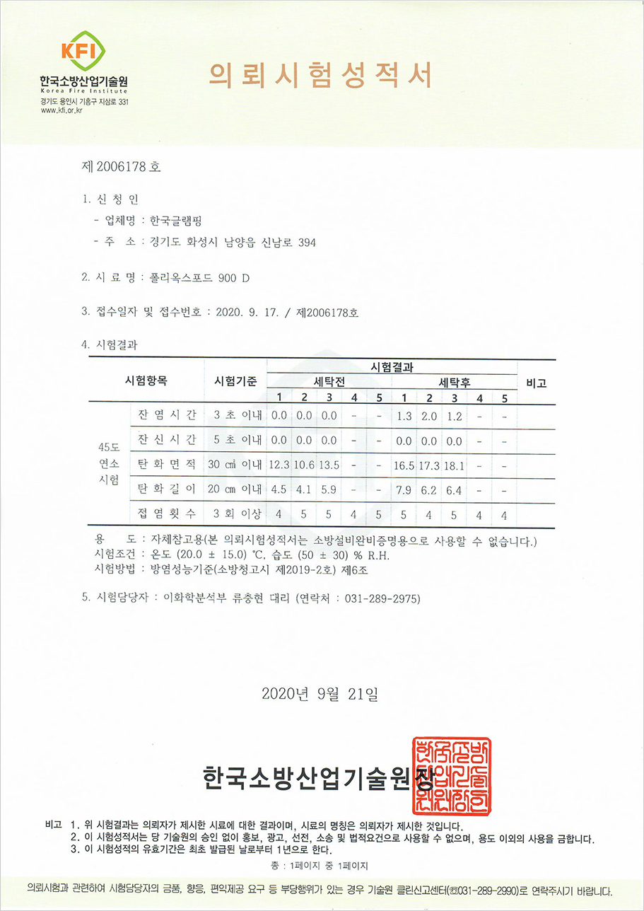 방수, 방염에 필요한 모든 시험성적서를 확인하실 수 있습니다.